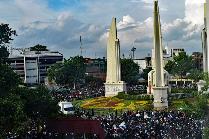 Deze maand waren er meerdere demonstraties van voornamelijk studenten, bij het Democratie Monument in Bangkok. De grootste bijeenkomst was op 16 augustus.