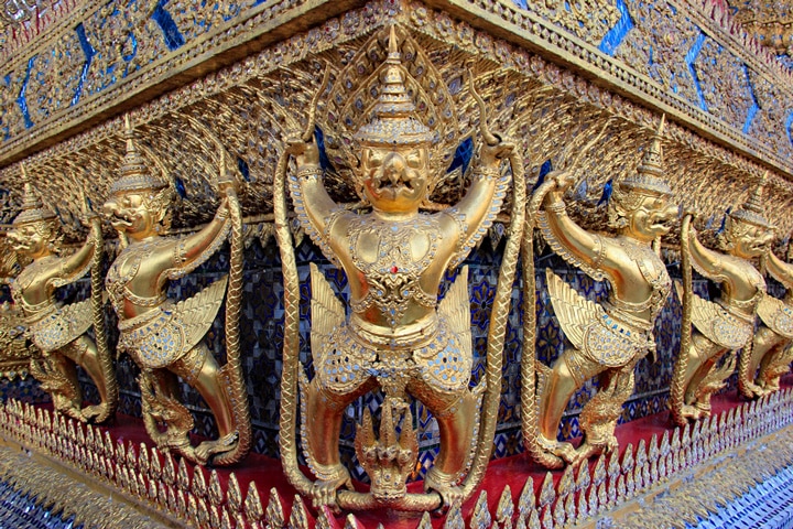 Garuda decorated on the wall of Emerald Buddha Temple in Bangkok