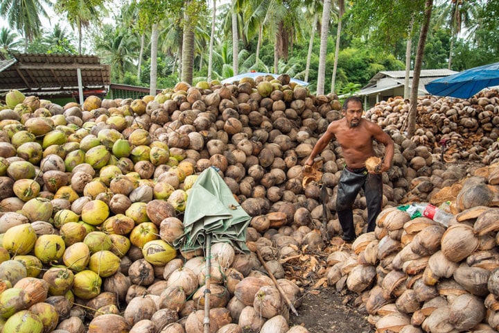 Betekenis van de kokosnoot voor de Thaise economie en werkgelegenheid