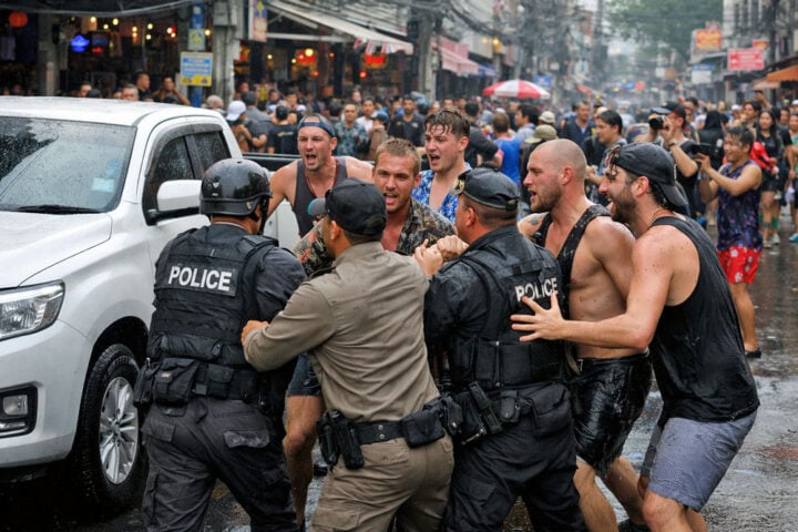 De duidelijkste zaak uit Songkran 2026 speelde in Patong op Phuket. Daar werden op 14 april zeven buitenlandse toeristen gearresteerd nadat beelden viraal gingen van ontregelend en agressief gedrag rond een bestelwagen op Prachanukhro Road bij Malin Market. De politie sprak van openbare overlast en het hinderen van verkeer. In de berichtgeving werd ook gemeld dat het om Franse toeristen zou gaan. Een dag eerder ontstond in Pattaya op Walking Street opnieuw ophef toen twee buitenlandse mannen midden in de feestdrukte een poederblusser leegspoten over de menigte. Omstanders schrokken, toeristen vluchtten weg en de actie werd breed gezien als gevaarlijk en respectloos.