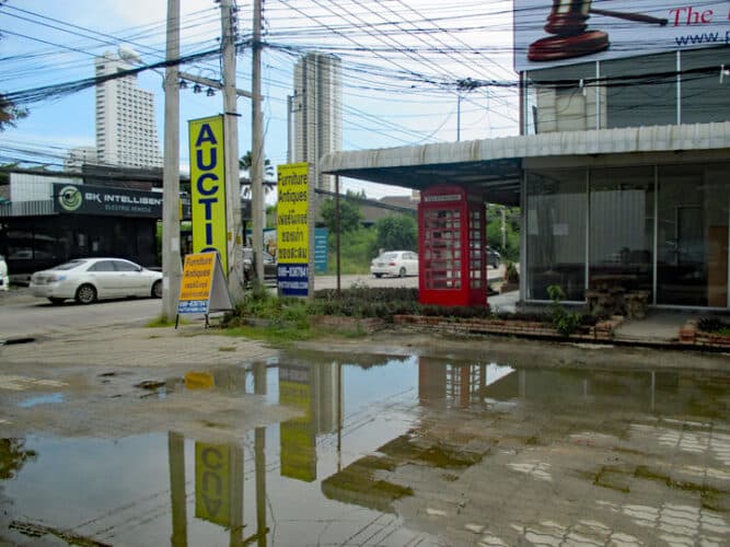 Rijdt men op de Chaiyapruek 1 richting kust dan staat rechts van de weg een niet te missen groot bord met Auction.