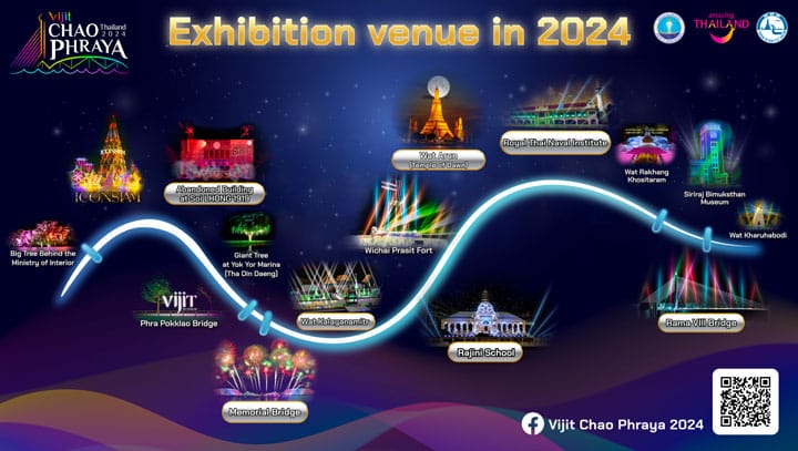Van 16 november tot 15 december transformeert de rivier elke avond in een adembenemende lichtshow. Zeven iconische bezienswaardigheden, verspreid over veertien locaties langs de Chao Phraya, worden verlicht door indrukwekkende lichtshows, lasers, projectiemapping, culturele Thaise optredens en vuurwerk. Deze evenementen maken deel uit van de feestelijke “Thailand Winter Festivals.”