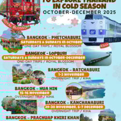 De Staatsspoorwegen van Thailand (SRT) organiseert dit najaar een serie bijzondere treinreizen met de luxueuze Royal Blossom en de charmante Japanse KiHa-treinen. Van eendaagse ritten naar Phetchaburi en Lopburi tot tweedaagse uitstapjes naar Hua Hin, Kanchanaburi en Prachuap Khiri Khan: reizigers kunnen Thailand beleven in een langzaam tempo, met comfort, nostalgie en een vleugje klassieke stijl.