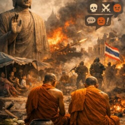 Thailand noemt zich een boeddhistische natie, gebouwd op mededogen en geweldloosheid. Maar langs de grens met Cambodja klinkt vooral het geluid van wapens en haat. Terwijl burgers vluchten en jonge soldaten sterven, blijft de geestelijkheid opvallend stil. Wat zegt die stilte over geloof, macht en nationalisme in tijden van oorlog?