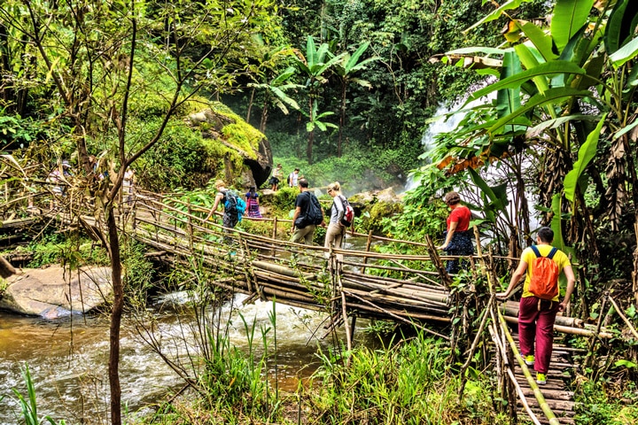 Pai en Chiang Mai, beide gelegen in het noorden van Thailand, zijn populaire vertrekpunten voor jungletochten.