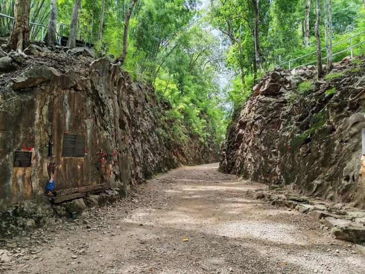Hellfire Pass is een van de meest aangrijpende plekken in Kanchanaburi. De diepe rotsuitsnijding maakte deel uit van de spoorlijn tussen Thailand en Myanmar, die tijdens de Tweede Wereldoorlog onder extreem zware omstandigheden werd aangelegd. De plek kreeg haar naam door het nachtelijke werk bij fakkellicht, dat de rotswanden een bijna onwerkelijke aanblik gaf.