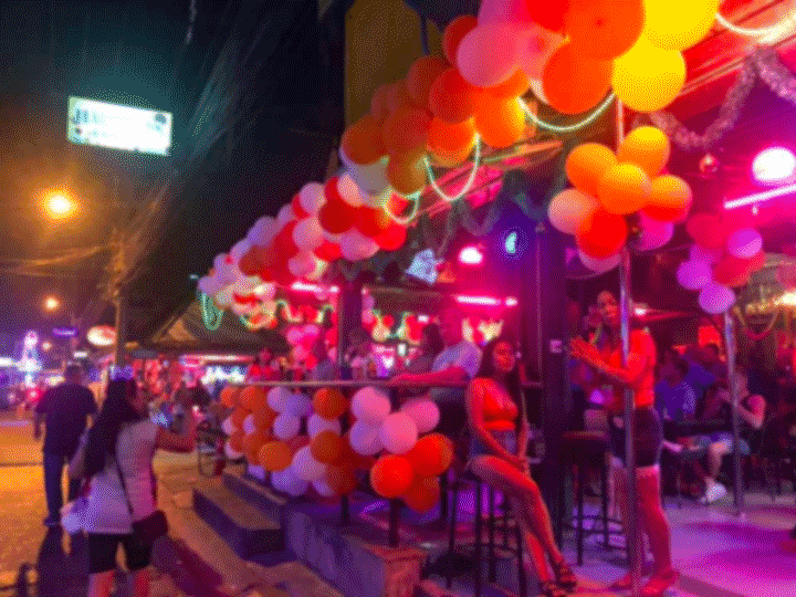 Van een afstand zag ik het al: ballonnen. De Happiness Bar 1 en 2 waren rijkelijk versierd met ballonnen, er was een podiumpje in elkaar geknutseld voor livemuziek en er stonden twee grote tafels opgesteld. Dat betekende dat er iemand jarig was. Niet een van de meisjes, niet de mamasan, maar het grote opperhoofd, de eigenaresse van de bars. Groot feest dus. Om acht uur zou het beginnen, begreep ik van Ning.