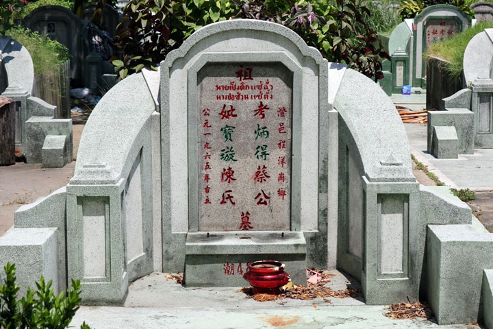 Toch is er een grote groep Thais die begraven prefereert: Chinezen of beter gezegd Thais van Chinese afkomst. Overal door het land zie je uitgestrekte terreinen met kleine heuveltjes, waarin een halfronde zerk. Een van de mooiste, die ik me kan herinneren is de Governor’s Graveyard in Ranong. Maar je hoeft niet zo ver te gaan.