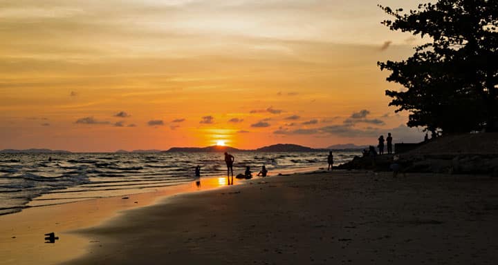 Ik voelde iets onbestemds aanwezig. Het was een vaag gevoel van vrije lucht en een sterke visgeur vol bederf en ontbinding. Vlakbij voor de kust van Laem Mae Phim zagen we twee rotsachtige eilandjes die men Khi Plaem of Visuitwerpselen noemt. De vissers brengen in druipende manden de kleine zilverkleurige visjes aan land, die hier in de streek voor de bereiding van de albekende nam pla-saus worden gebruikt.