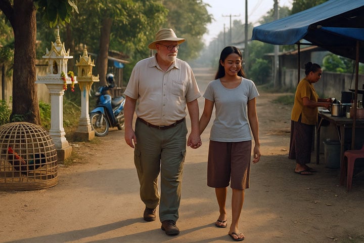 Want geloof me: de wiskunde van de liefde klopt hier zelden. Als je het aan een nuchtere Hollander vraagt, krijg je een mengeling van cynisme en jaloezie: “Ze willen je geld, je paspoort, je pensioen.” Misschien. Maar als je het aan een oudere farang vraagt die al jaren tussen de mango’s en de muggen bivakkeert, dan zie je iets anders. Iets zachter. Iets wat je met je hoofd niet kunt vatten, maar je hart een beetje herkent.