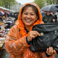 Want wie komt er op een verregende Koningsdag, met verzopen haardracht maar desondanks stralend van Oranjegezind enthousiasme, aandragen met een tweedehands laptop-tas van de rommelmarkt hier ten dorpe?