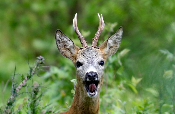 Wat die hond betreft, die is nog steeds boos op het blaffende hert, en als hij er een ziet dan jaagt hij hem op…