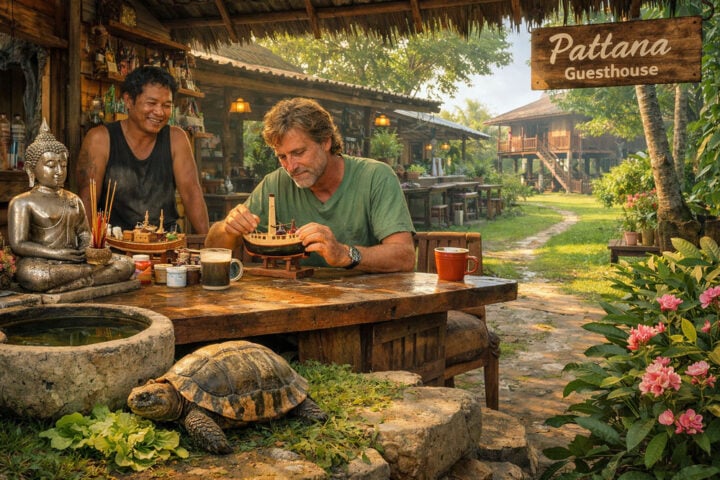 Hij lijkt aanvankelijk zijn droom gevonden te hebben: zon, zee, vrijheid, geluk en rust. Hij bouwt een routine op van schrijven, knutselen aan miniatuur vissersbootjes, gesprekken met stamgasten, dagelijkse bezoekjes aan zijn stamcafé en vaste strandtent, strandwandelingen en zijn relatie met Noi.