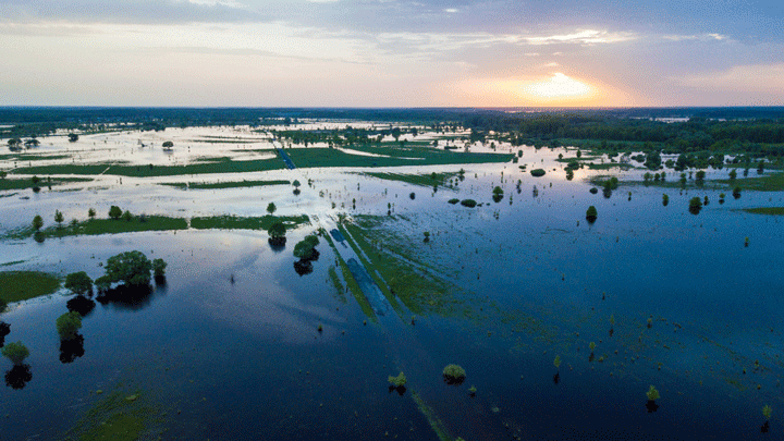 Dan breekt het noodweer los; regen en wind teisteren het dorp. Door deze zware storm breken een dag later de dijken door en het water zet de hele regio onder water. Alles spoelt weg! Ook zware boomstammen en dus ook zijn geldvoorraad!