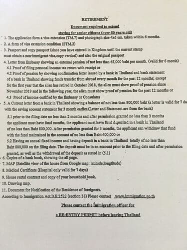 “Hierbij de eisen die gesteld worden bij Immigratie Koh Somui voor het bekomen van een jaarverlenging op basis van Retirement”