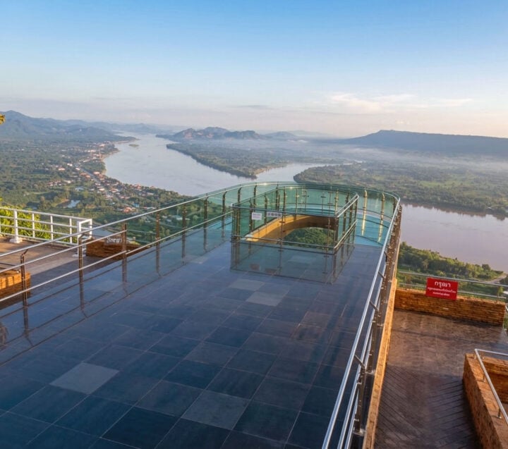 - Wat Pha Tak Suea: Dit is een iconische tempel gebouwd op een heuvel. De “skywalk” van deze tempel biedt een spectaculair panoramisch uitzicht over de Mekong-rivier en het aangrenzende Laos.