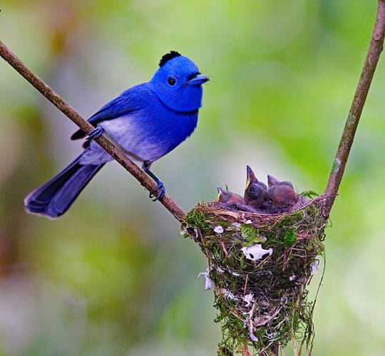 In een schaduwrijke tuin in Thailand kan ineens een felblauw vogeltje oplichten tussen het blad. De zwartnekmonarch is klein, maar hij gedraagt zich als een baas: rechtop zittend, snel wegschietend en weer terug op dezelfde tak. Wie hem één keer ziet, gaat automatisch beter kijken op rustige, groene ochtenden.