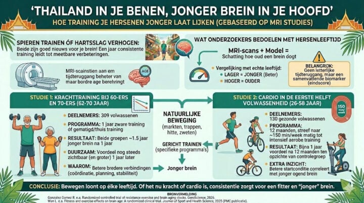 Gezondheid28 februari 2026In Thailand hou je je brein jonger met krachttraining en cardio
