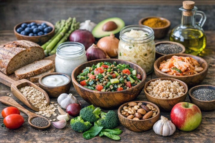 Dit zijn voedingsmiddelen die bepaalde gunstige bacteriën extra ondersteunen. Denk aan ui, knoflook, prei, asperges, haver, gerst, peulvruchten en iets groens bij elke maaltijd.