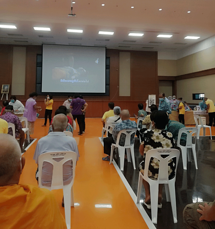 Mijn Mor Phrom afspraak stond op 3 augustus, maar afgelopen vrijdag werd ik gebeld dat ik vanwege mijn leeftijd (65 jaar) vandaag (7 juni) al werd verwacht. In het kleine hospital van Charoen Sin (Sakon Nakhon provincie) waren vandaag 200 dosis Astrazeneca aanwezig. Samen met mijn Thaise vrouw, die al gevaccineerd is met Sinovac (zorgmedewerkster), waren wij er om 08:30 u. en om 09:30 u. stond ik gevaccineerd weer buiten. Ook ik mag voorlopig 27 September terugkomen voor mijn 2e dosis.