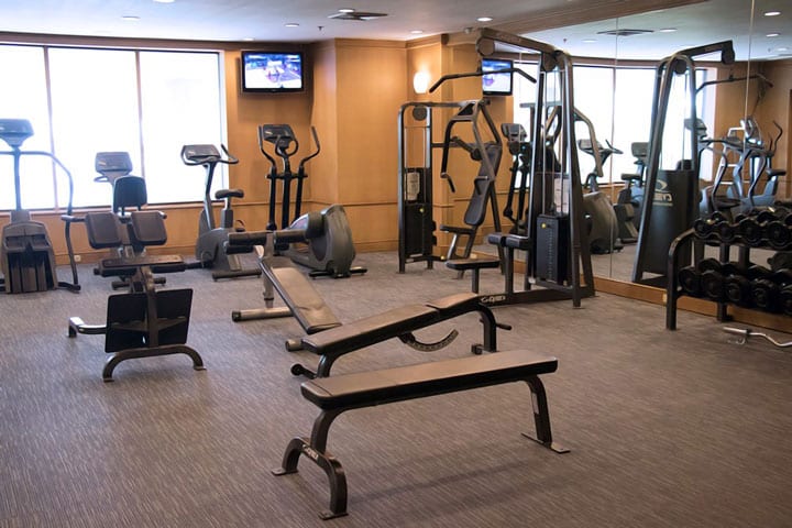 We krijgen een kamer toegewezen op de tiende verdieping, aan de tuinzijde met zicht, door het bladerdak, op de ambassade. De kamer bestaat uit een zitkamer met eethoek en een uitgebreide keuken. In de keuken een microwave, een grote koelkast en zelfs een wasmachine. Het bankstel geeft zicht op een flatscreen TV. Verder is er een aparte slaapkamer met kingsize bed, wederom met een flatscreen TV, een ruime kledingkast, een ruimte waarin strijkplank en strijkijzer verstopt zijn, een bureau en een mooie badkamer met ligbad en een aparte doucheruimte. Nieuwsgierig geworden: kijk op hun website en zie alle foto’ s.