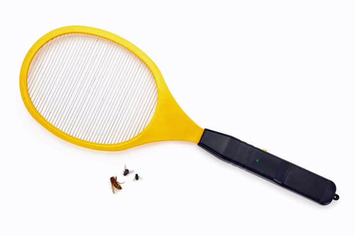 Het rooster voor de luidspreker zou uitstekend hebben gewerkt. Jammer dat ik dan de hele speakerset moest kopen. Plotseling viel mijn oog op een elektrische vliegenmepper. Zou dat ook werken en niet gaan plakken, kapot gaan of te snel vies worden, waren zo mijn gedachten.