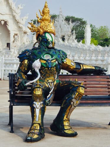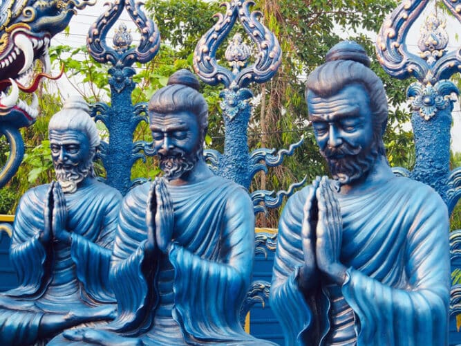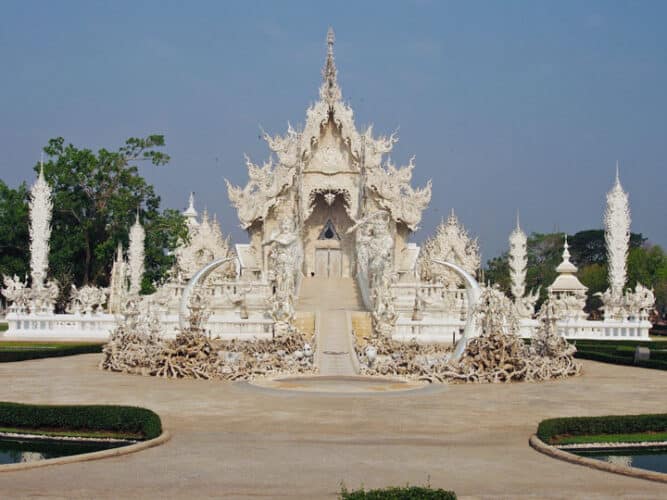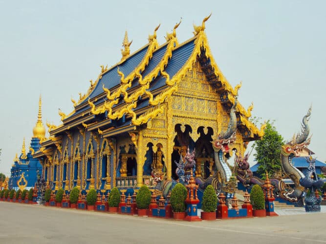 Hier in Chiang Rai is dat bij voorbeeld de bekende Witte Tempel, Wat Rong Khun, maar ook de Blauwe Tempel, Wat Rong Seua Ten.