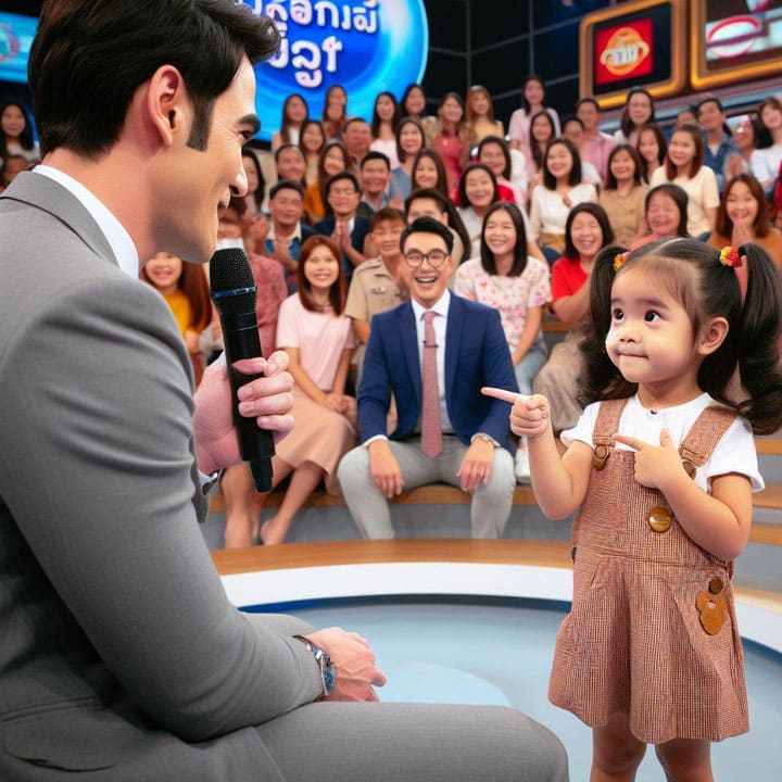Op de Thaise televisie is een show aan de gang waar iedereen steevast naar kijkt. Er komt een meisje van vijf jaar in de uitzending, met schattige lange vlechtjes en een grijns van oor tot oor.