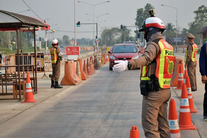 Dus ik benader de controlepost, altijd met de lichten aan, m’n raampje omlaag, geen zonnebril en begroet hen vriendelijk met “Sawasdee krab”, goeiedag! Dat gaat altijd goed, nooit hoef ik te stoppen. Farang achter het stuur en zijn Thaise schatje ernaast. Dat zit wel goed blijkbaar. De weg terug idem dito.