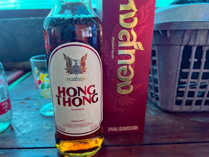 Na de intrek in de ‘gasten slaapkamer’ en eens even een douche genomen te hebben en een fris lijf en schone kleren was het tijd voor een versnapering. De lokale dranken, bier en zowaar fris voor de jeugd die er inmiddels ook al weer was stond op de buitentafel, een flink model door meerdere van de familieleden gemaakt was om zo af en toe eens gezamenlijk het een en ander te bespreken en te nuttigen. Voor de ontvangst was de tafel uiteraard vol geladen met voedsel en de BBQ een half doorgesneden olievat stond op te warmen. Na de eerste bieren, ontdooide het geheel en die voedingsbodem voor een fijne avond lag in het vooruit. Vele uren later na flink wat bieren en af en toe een longdrink glas Hong Thong dit alles met liters water, soda water en vooral ijs afgevuld begaf Piet zich naar de gasten slaapkamer.
