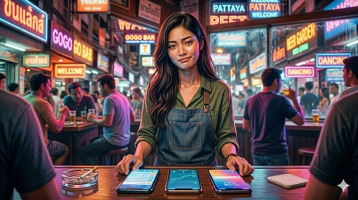 In de Wonderfull 2 hadden alle meisjes een telefoon. Dit was geen luxe, maar gereedschap, net zo noodzakelijk als de glimlach en de barkruk. Via Line kwamen de berichtjes van klanten die vroegen: “u free tonight?”, via Facebook hielden we bij wie er weer in Thailand was geland en via PromptPay ging het geld naar huis. De mama-san keek er niet van op. Maar als je je telefoon niet had was er wel wat aan de hand. Dan was je niet bereikbaar en niet bereikbaar betekende omzet mislopen, en omzet mislopen was in de Wonderfull 2 het enige echte misdrijf.