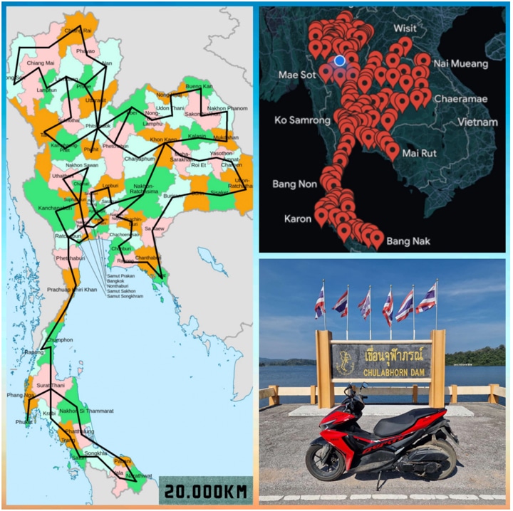 In mei 2022 tot december 2022 heb ik een rondreis gemaakt door Thailand op een gehuurde Yamaha Aerox 155. Een reis vol mooie herinneringen, waarbij elke provincie weer wat anders te bieden heeft.