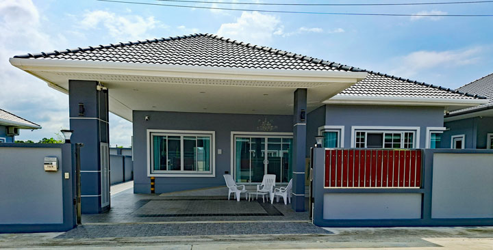 Zoek je een frisse, zorgeloos te betrekken woning in een rustige omgeving bij Pattaya, dan is deze jonge villa in Huay Yai een sterke kanshebber. Het huis is circa anderhalf jaar oud, keurig onderhouden en wordt volledig gemeubileerd aangeboden. Je kunt er direct in, na overdracht bij het Land Office.