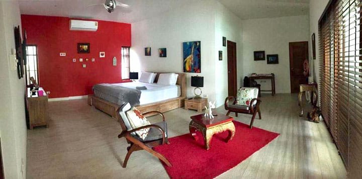 Gelegen op 1 rai met prachtige tuin en vijver, en fitnessruimte, apart in de tuin gelegen massageruimte en BBQ. Het huis heeft ook twee bungalows voor gasten met alle voorzieningen. Vanaf de bovenverdieping heeft men een fantastisch uitzicht op de omliggende bergen.