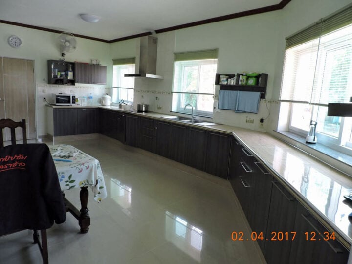 De woning staat op een perceel van 1,5 rai en heeft een woonoppervlak van circa 350 m². Er zijn vier tot zes slaapkamers mogelijk, afhankelijk van de indeling die je kiest. De keuken is ruim opgezet met een oppervlakte van ongeveer 35 m². Daarnaast is er een aparte snookerruimte van circa 45 m², ideaal als ontspanningsruimte of multifunctionele kamer.