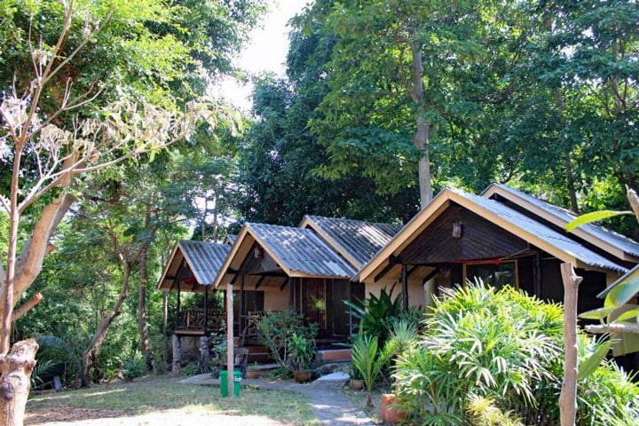- 4 twee pers. traditionele houten bungalows met ventilator.