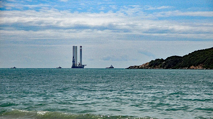 Een boorplatform, in de Golf van Thailand staan verscheidene van deze, gezien de lage olieprijs, zal deze wellicht niet naar olie gaan boren, maar wordt deze wellicht opgeknapt of gesloopt.