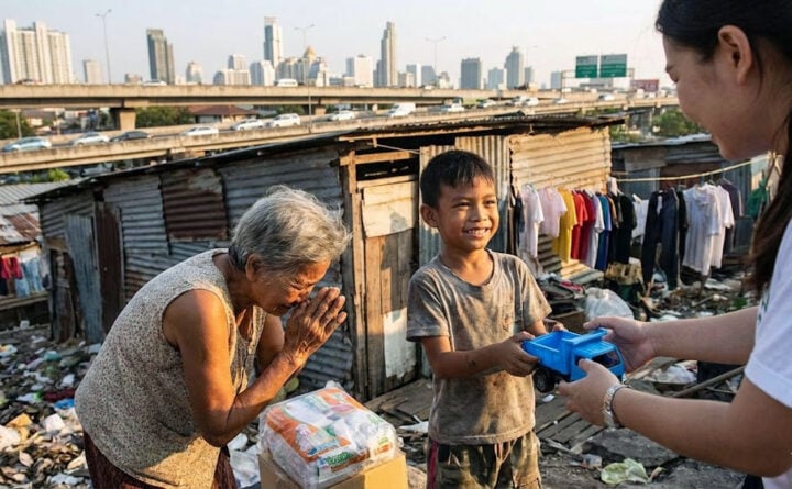 Kerstmis in de achterbuurt van Bangkok brengt hoop in een wereld van staal en beton