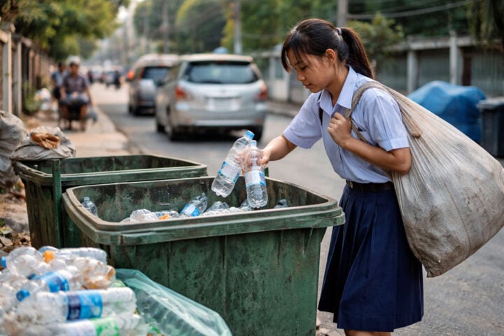 In Nonthaburi is veel aandacht ontstaan voor het verhaal van de 15-jarige Benyapha Thanakornmnaporn. Zij helpt haar gezin door plastic flessen en ander recyclebaar afval te verzamelen en te verkopen. Dat doet ze naast haar schoolwerk en de zorg voor haar vader, die al jaren niet meer kan lopen. Haar verhaal werd breed gedeeld op sociale media en raakte veel mensen.
