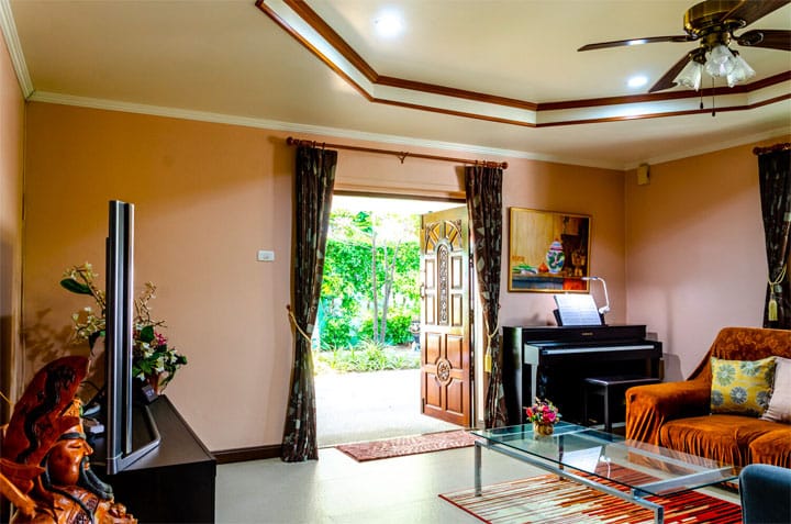 Het huis is in een company en er zijn twee soorten aandelen namelijke één soort met 10 stemmen per aandeel (voor de internationale eigenaar) en een tweede soort met één stem per aandeel (voor de Thaise eigenaar). De stemverhouding in de onderneming ligt dan ook op 90:10 en tezamen met een vooraf door de Thaise eigena(a)r(en) getekend, ongedateerd aandelenoverdracht formulier wordt de volledige greep op de onderneming gerealiseerd. Op mijn Engelstalige website www.mybannongyaihouse.com kunt nog veel meer over mijn huis lezen en daar is ook een formulier dat u kunt invullen voor meer informatie.