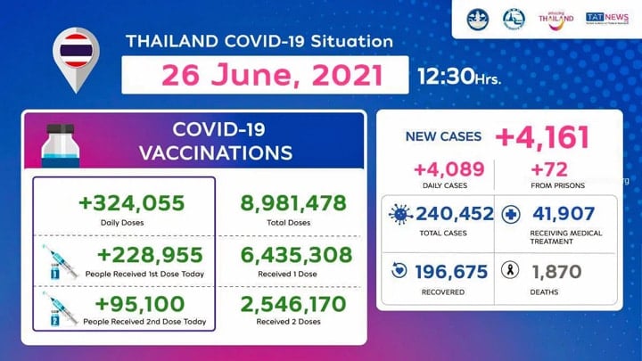 Als het waard is zoals Thailand in grafieken aangeeft dat er al bijna 9 miljoen vaccinaties zijn gezet waarvan iets meer dan 2,5 milj als 2e prik, dan verdient Thailand absoluut een paar complimenten. Vergelijk maar eens met de Belgische priksituatie: al maanden bezig, in december vorig jaar nog sneren afgevend aan Nederland en nu anno eind juni niet verder dan 6,7 miljoen gezette vaccins waarvan 3,7 milj volledig. Laten we hopen dat Thailand in staat blijft door te gaan in dit tempo en eind van het jaar klaar te zijn en zo het winterhoogseizoen nog weet te reden.