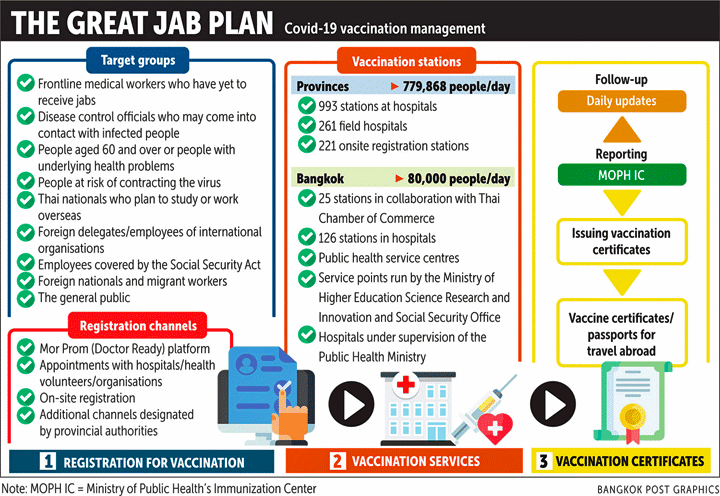 Regeringswoordvoerder Natapanu Nopakun laat weten dat de regering 7 juni heeft vastgesteld als startdatum voor de grootschalige vaccinatiecampagne.
