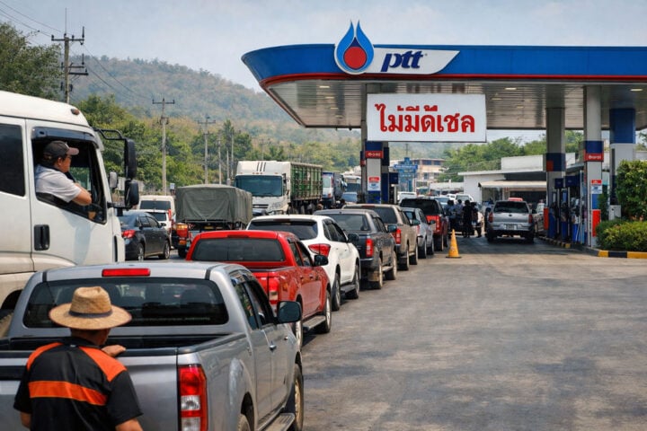 In delen van Thailand merk je nu hoe kwetsbaar de brandstofvoorziening buiten Bangkok kan zijn. In het noorden en noordoosten stonden zondag honderden voertuigen in de rij voor diesel, terwijl sommige tankstations al binnen enkele uren volledig droogvielen. Vooral chauffeurs, boeren en vervoerders werden daar direct door geraakt.