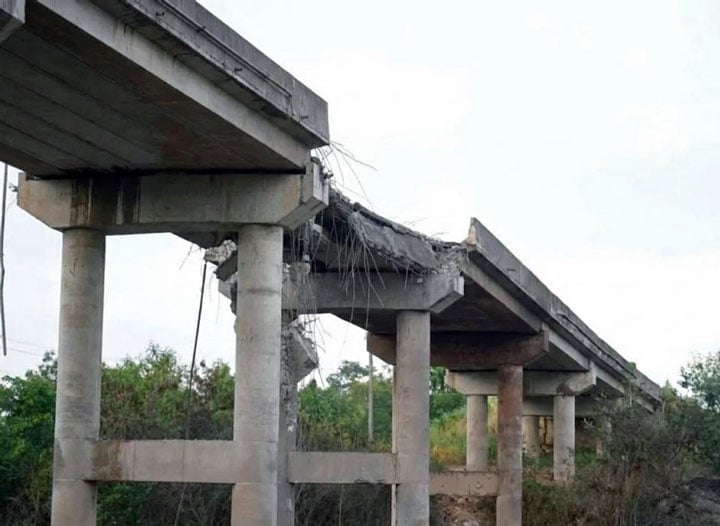 De brug is beschoten door een F16 samen met een nabij gelegen hotel/casino complex.