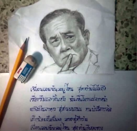 Een 19-jarige vrouwelijke beveilingsbeambte heeft zichzelf in Bangkok opgehangen nadat ze een potloodtekening van premier Prayut had gemaakt en deze op social media plaatste.