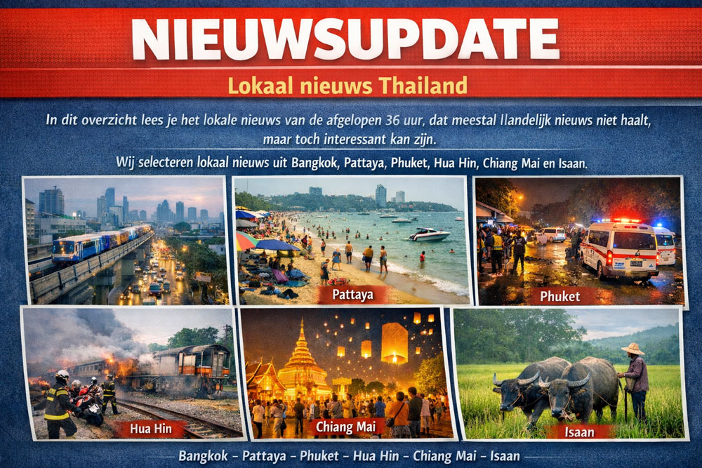 In dit overzicht lees je het lokale nieuws van de afgelopen 36 uur, dat meestal het landelijk nieuws niet haalt, maar toch interessant kan zijn. Wij selecteren lokaal nieuw uit Bangkok, Pattaya, Phuket, Hua Hin, Chiang Mai en Isaan.