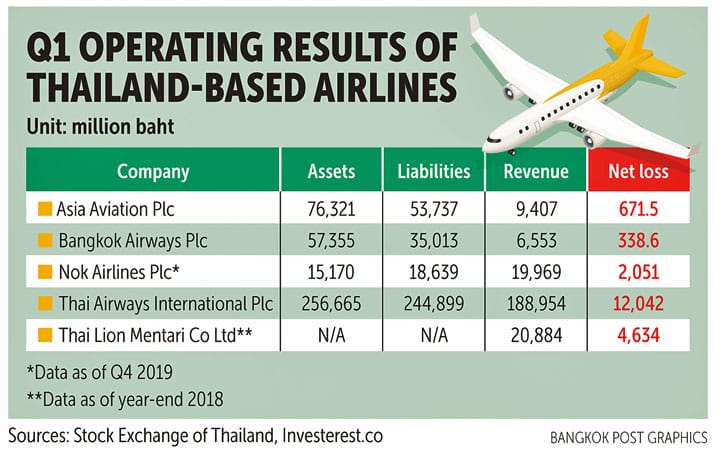 Slechte cijfers zo te zien, allemaal verlies en dat met alleen maar de maand maart met een paar weken beperkingen voor de vluchten en passagiers en 2 normale maanden operations in januari en februari. Nu nog wachten op het 2e kwartaal met 3 volle maanden met vrijwel geen (inter)nationale activiteiten en dan zie je de schade pas echt. Nok Air heeft al problemen want heeft uitstel van de publicatie van het eerste kwartaal aangevraagd, zegt ook al niet veel goeds. Wat ik denk dat alleen Air Asia in Thailand overblijft in afgeslankte vorm voor de binnenlandse markt, Nok Air verdwijnt helemaal en dan blijft de hele binnenlandse markt over voor Air Asia Thailand. Alle andere maatschappijen verdwijnen inclusief Thai Airways of deze laatste gaat door met slechts een paar vliegtuigen. Zoals gezegd als je met 2 weken stilliggen in 3 maanden tijd al dikke verliezen lijdt en het 2e en 3e kwartaal komen er nog aan dan voorspelt dit niet veel goeds.