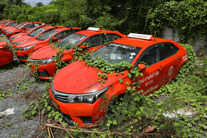 De coöperaties Ratchapruk en Bovorn Taxi hebben nu nog maar 500 auto’s over in de straten van Bangkok, met 2500 werkloos op een aantal locaties in de stad. Nu het op de straten van de hoofdstad tot voor kort doodstil was, was er te veel concurrentie voor te weinig klanten, wat resulteerde in een daling van het inkomen van chauffeurs. Velen kunnen de dagelijkse betalingen voor de voertuigen nu niet betalen, zelfs niet nadat de kosten waren gehalveerd tot 300 baht.