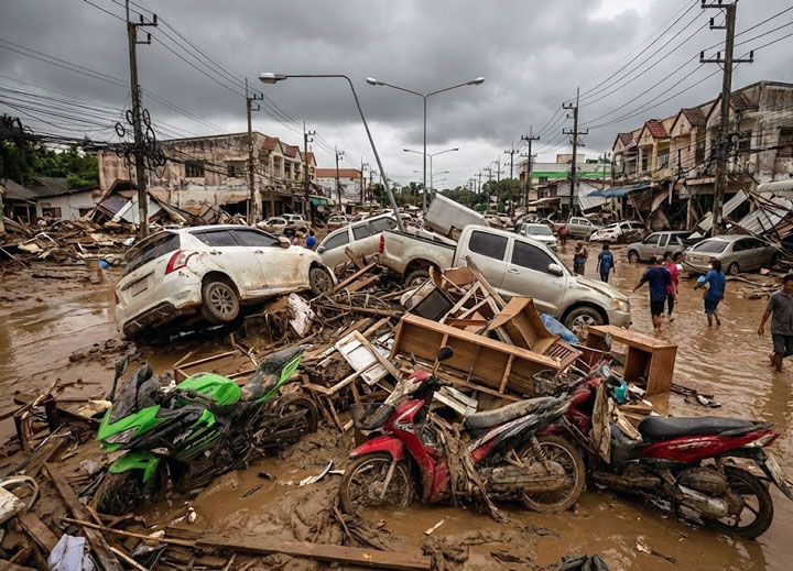 In Hat Yai is de impact bijzonder groot. Duizenden huizen werden onbewoonbaar door de modder en het vuil dat achterbleef. Volgens voorlopige schattingen raakten meer dan 33.000 woningen beschadigd. Ook vijf ziekenhuizen, 58 scholen en ruim 700 kilometer aan wegen liepen ernstige schade op. Veel straatrestaurants, winkels en hotels in de stad, geliefd bij toeristen uit buurland Maleisië, liggen nu in puin.