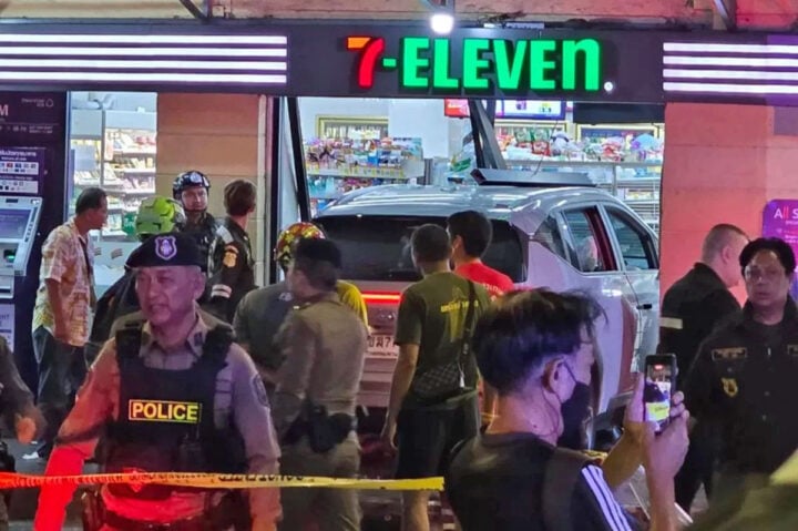 Volgens de politie botste de auto niet meteen op de supermarkt. Eerst werden buiten een tuk tuk en een noedelstalletje geraakt. Pas daarna reed het voertuig door en kwam het half in de winkel tot stilstand. Agenten troffen daar een ravage aan van beschadigde muren, omgevallen spullen en kapotte winkelvoorraad.